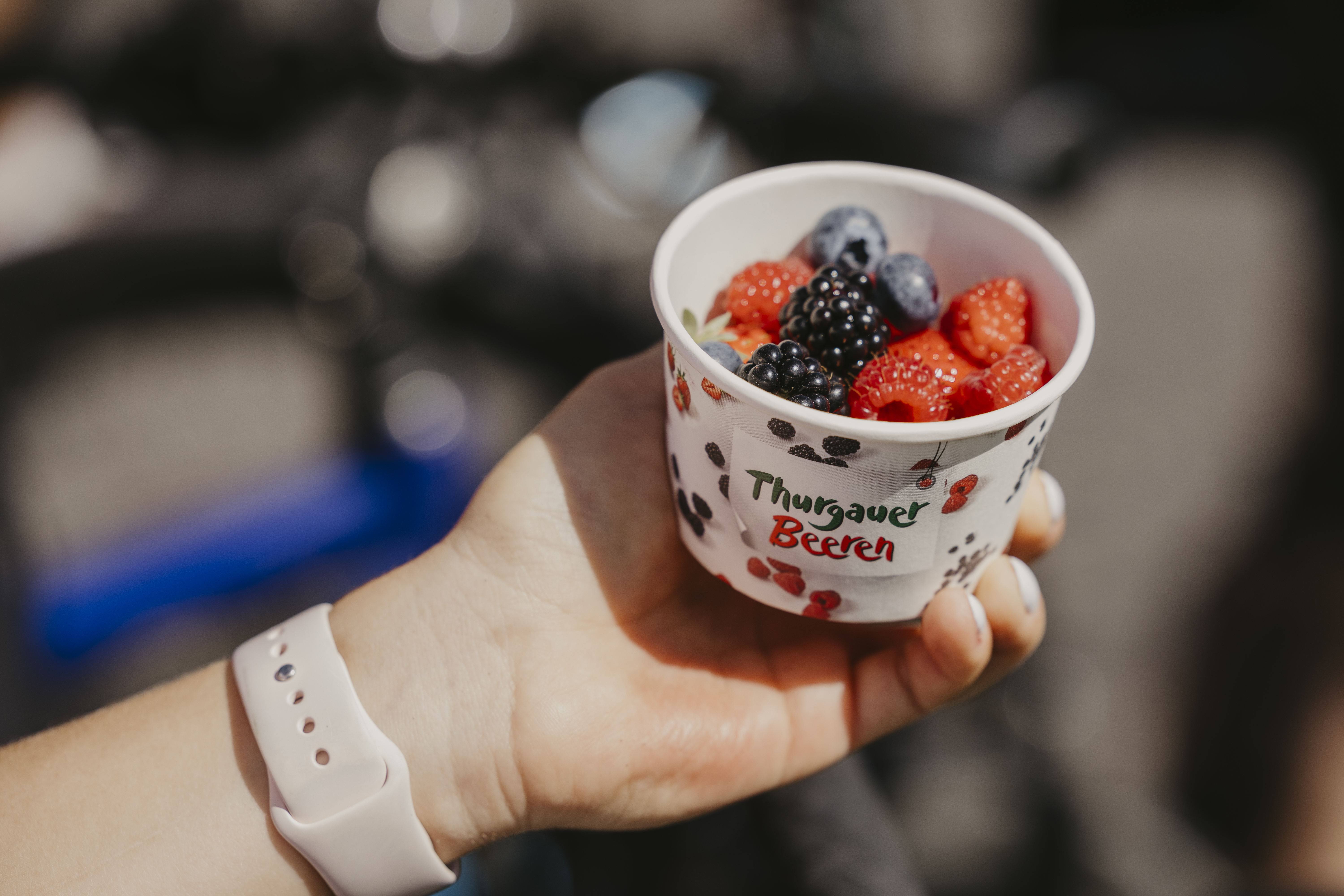 Auch dieses Jahr werden wieder frische Beeren am slowUp Bodensee verteilt, im Weiler Siebeneichen in der Gemeinde Egnach.
