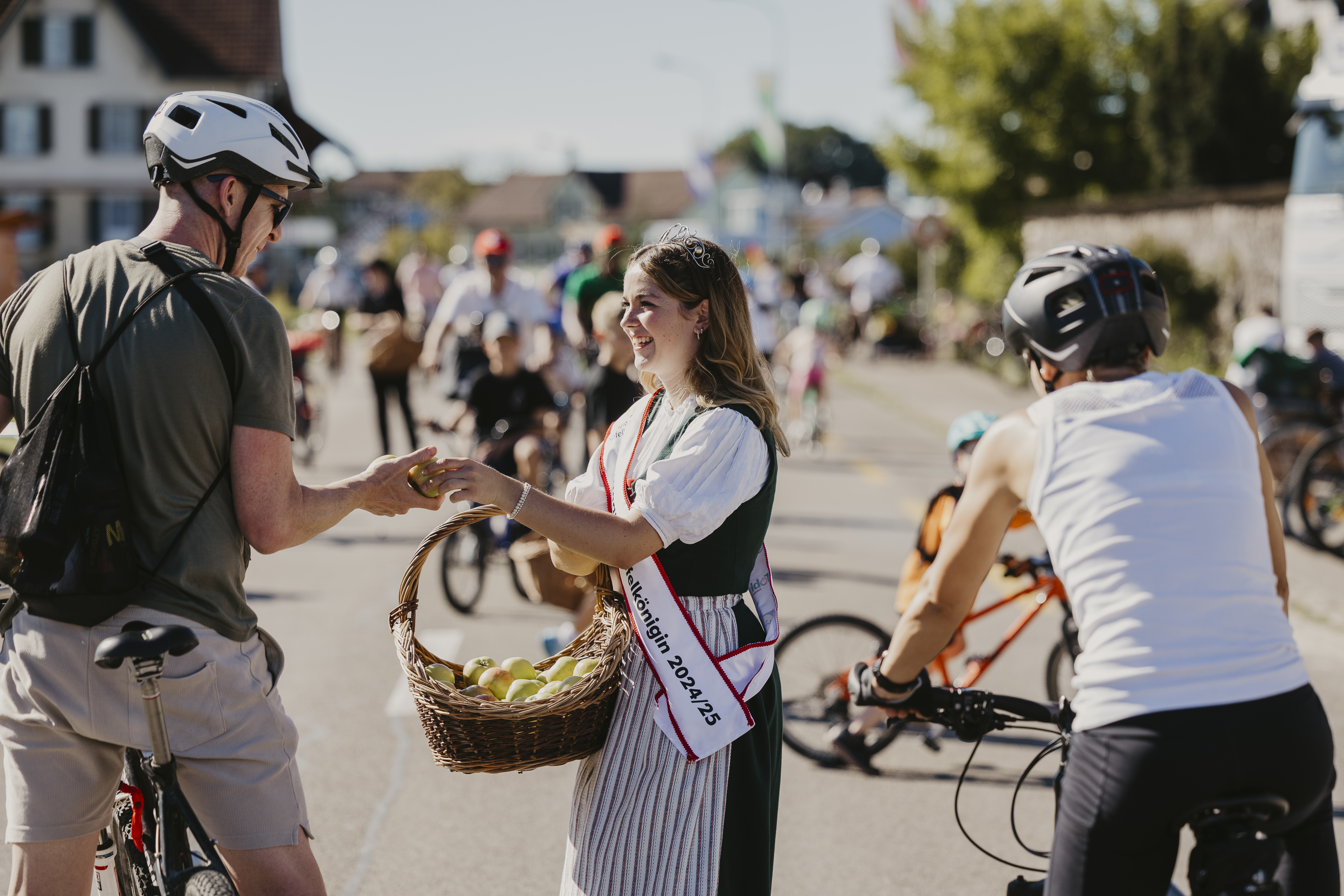 Die Thurgauer Obstbauern und Tobi Seeobst übergeben jedem slowUp-Teilnehmer einen feinen Thurgauer Apfel. Der Standort befindet sich im Weiler Buch in Egnach. Herzlichen Dank für diesen Beitrag an den Energiehaushalt, den Genuss und die Gesundheit der Teilnehmer.