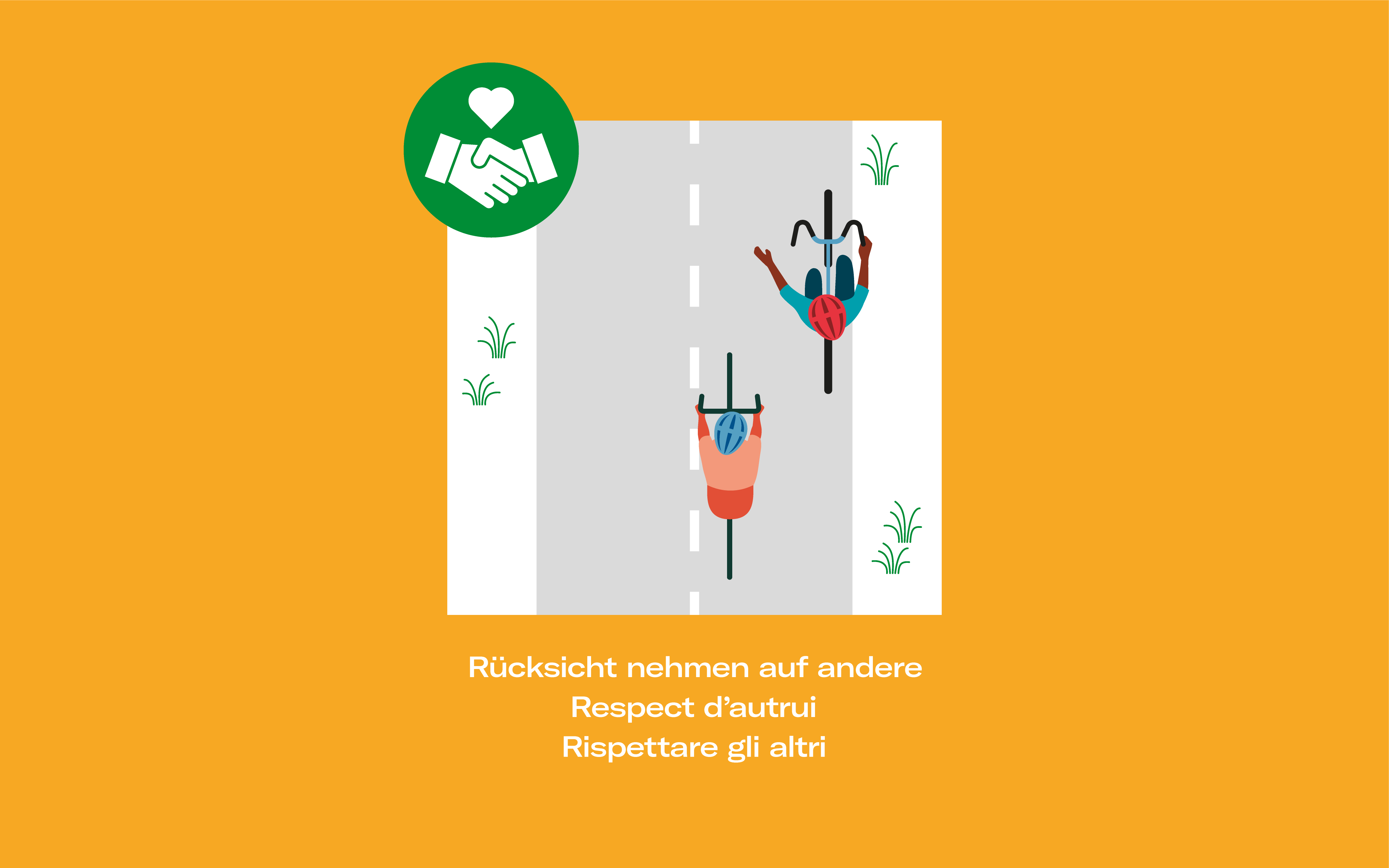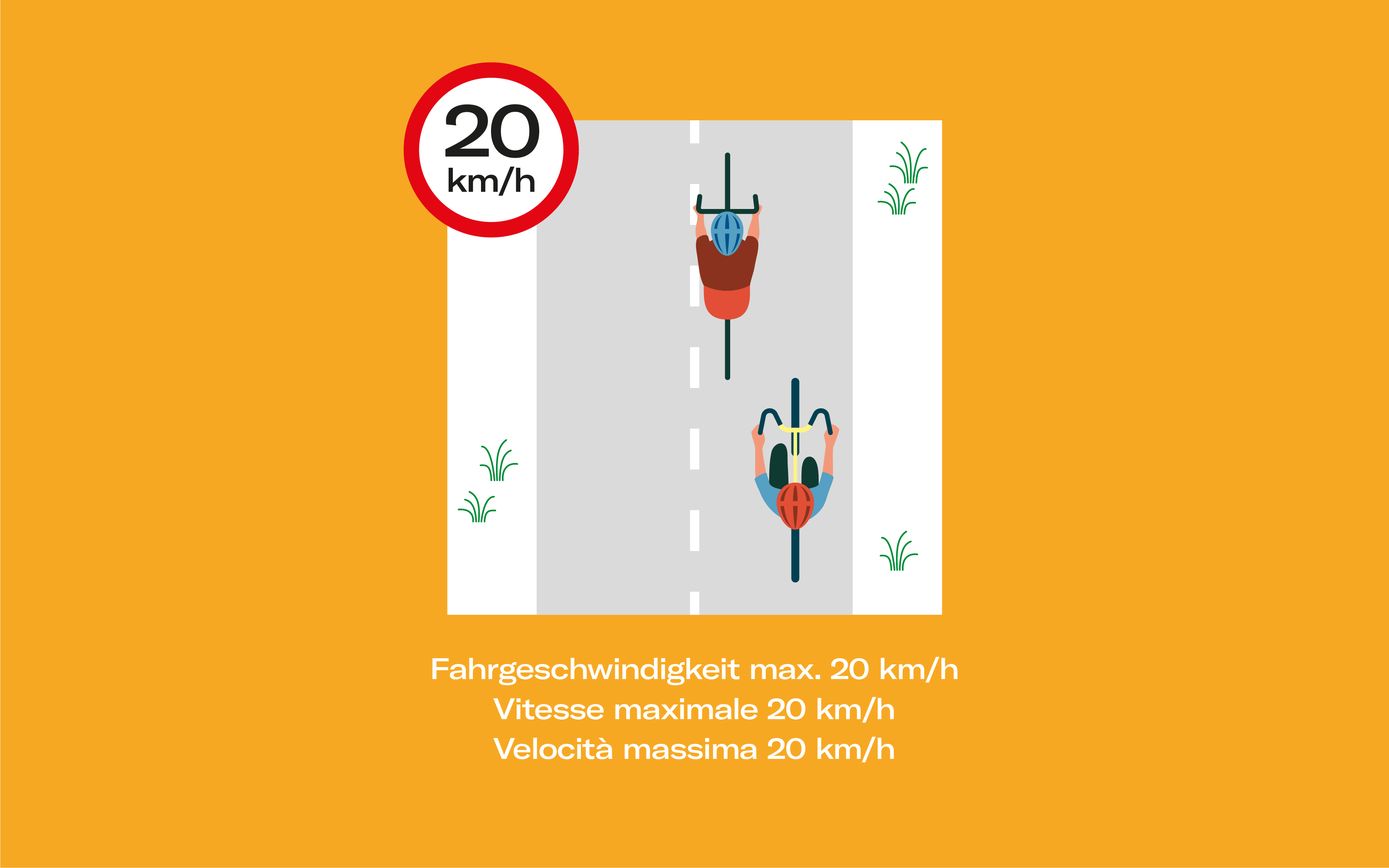 - Das Tragen eines Velohelmes sowie Schutzausrüstung für Inlineskatende wird dringend empfohlen.