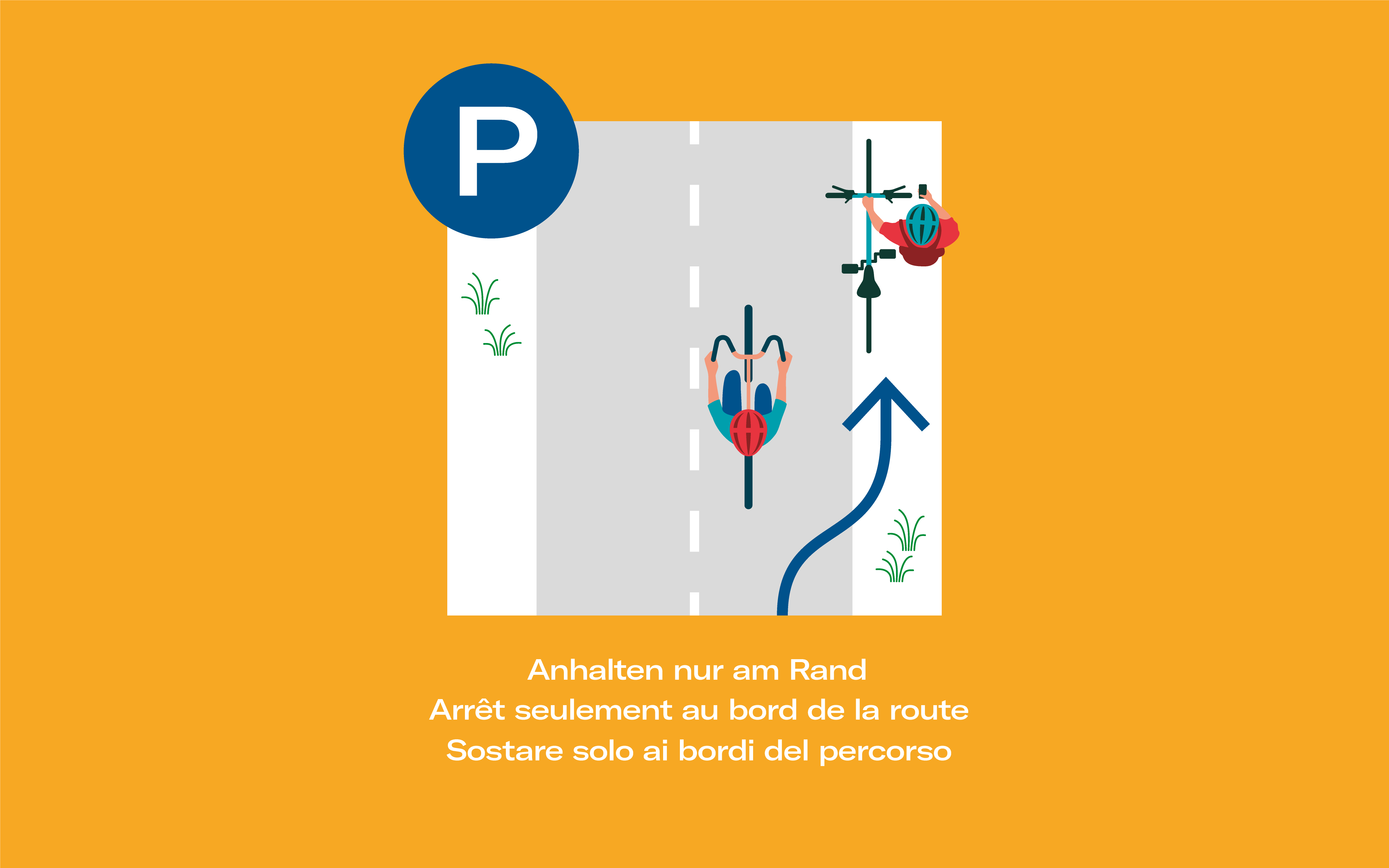 - Wer anhalten will fährt bitte an den Strassenrand oder neben die Fahrbahn.